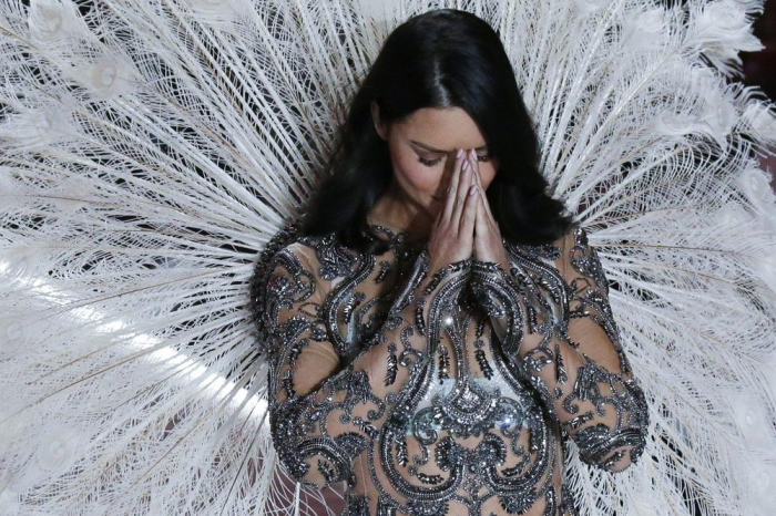 Беше облечена во сет долна облека, имаше огромни крила на грбот, а рацете ги држеше склопени на градите додека низ солзи и се заблагодаруваше на публиката и бреднот на самото затворање на шоуто во Њујорк.