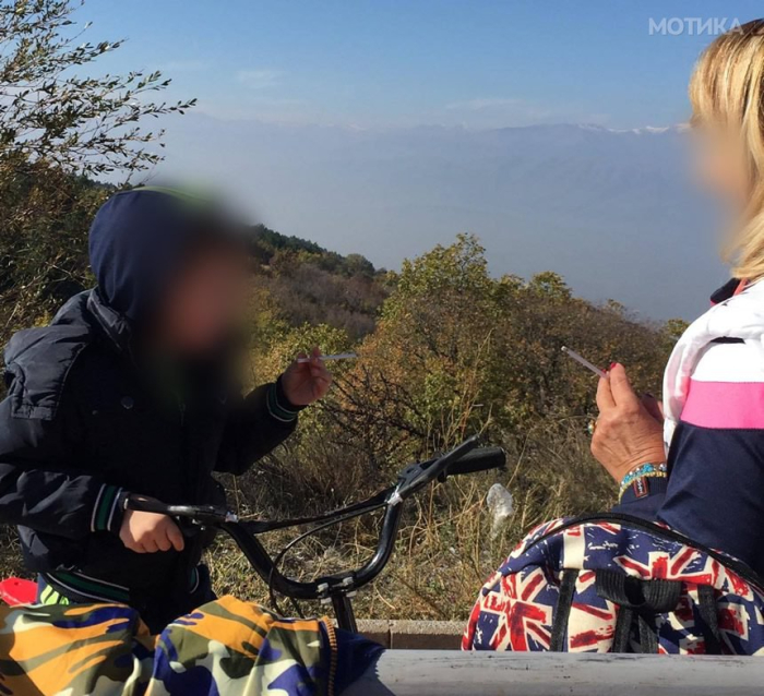 На Мотика осамна фотографија од која се згрози цела Македонија, на фотографијата се гледа како една постара жена му дозволува на внукот од три години да запали цигара.