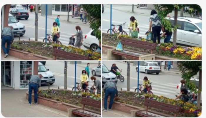 На социјалните мрежи се појавија фотографии од Битола на кои како што тврдат твитерџиите дека граѓаните сред бел ден крадат љубичици.