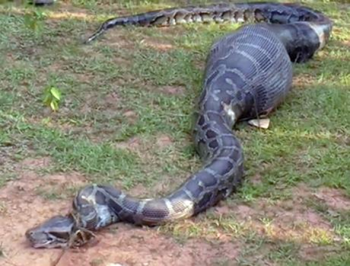 Питонот откако завршил со ручекот сакал да си замине од селото, но бил премногу тежок за да се движи.