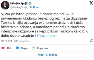 По инцидентот во Подгорица, Црна Гора итно го укинува безвизниот режим со Турција