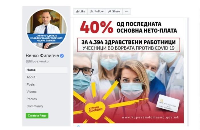 Филипче: Домашна картичка ќе добијат и 4.394 здравствени работници ангажирани во справување со КОВИД-19