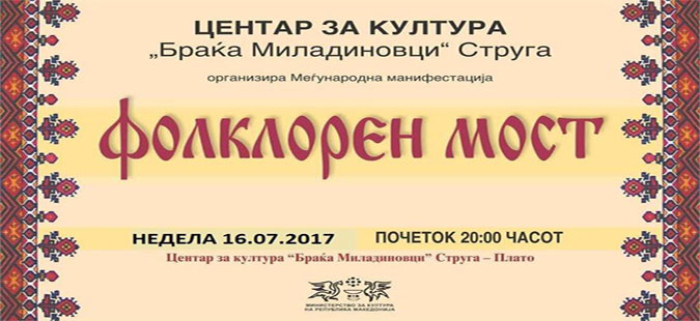 Во организација на НУ Центар за култура „Браќа Миладиновци“, вечерва во Струга ќе почне 11-тата Меѓународна манифестација „Фолклорен мост“ која финансиски е поддржана од Министерството за култура на Република Македонија.