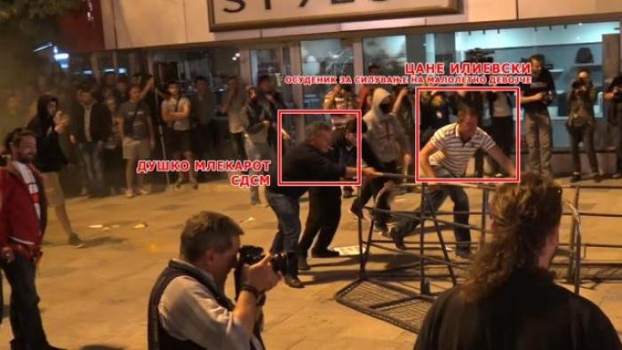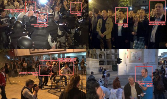 Во првите редови на насилните протести се најдоа и лидерот на СДСМ Зоран Заев и пратеникот од опозицијата Горан Сугаревски, како и поранешниот секретар на СДСМ Горјан Тозија. Меѓу хулиганите свое место најдоа и Љубомир Јосифовски пратеник од НСДП, Ѓуро Кешкец од СДСМ, Стојанче Ангелов од „Достоинство“, братучедот на Радмила Шекеринска, Никола Наумовски и Бориан Афтимов од СДСМ на Центар.zaev goran