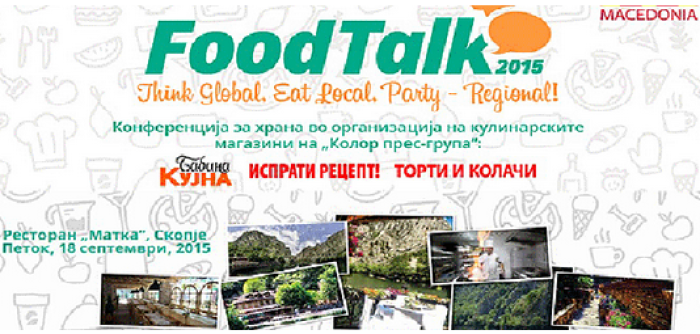 Под мотото „Размислувај глобално, јади локално, забавувај се регионално“, во ресторанот „Кањон Матка“ денеска ќе се одржи првата гастрономска конференција „Food talk Macedonia“.