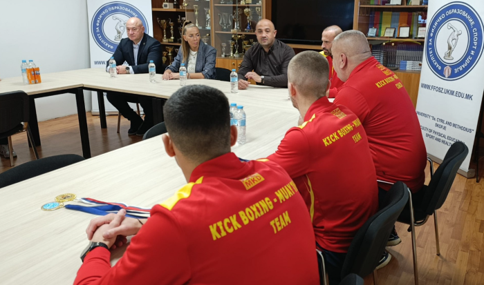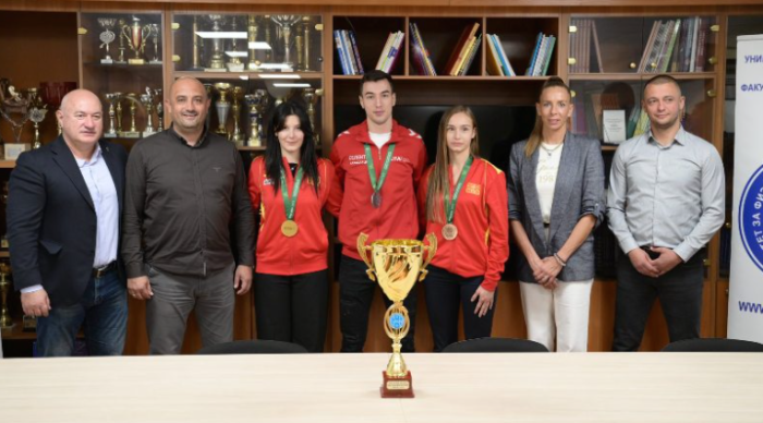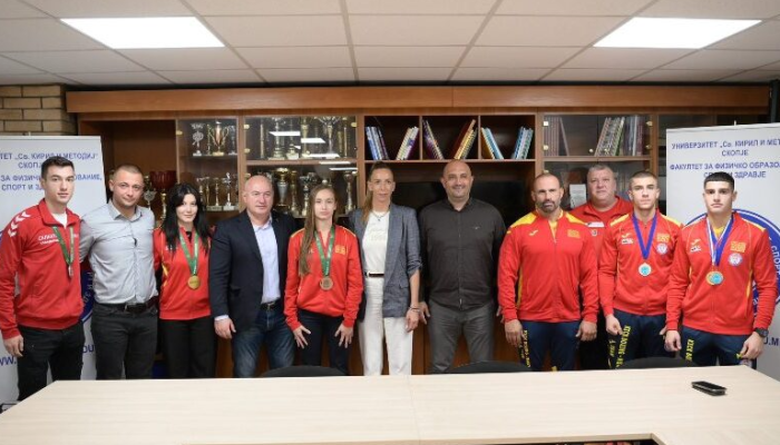 Денес на Факултетот за физичко образование, спорт и здравје, деканот проф. д-р Влатко Неделковски и продеканот за настава проф. д-р Андријана Мисовски ги пречекаа студентите – победници на Европскиот универзитетски шампионат во боречки спортови, кој се одржа во Варшава, Полска (22–25 август 2025 година).