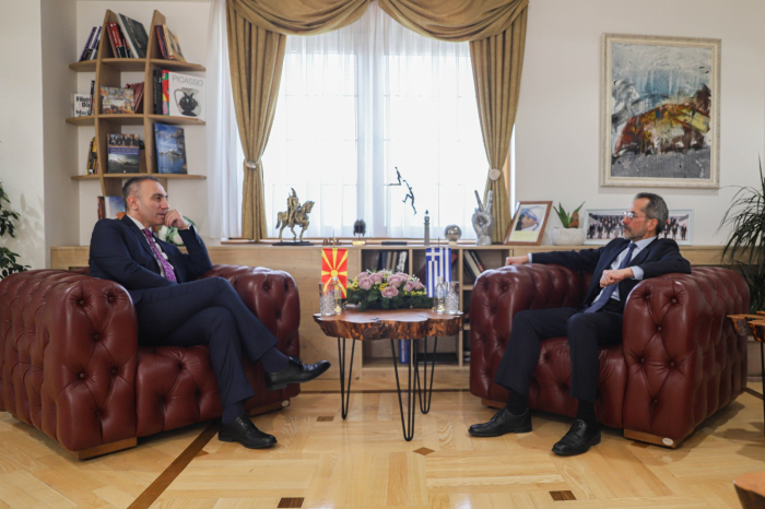 Првиот вицепремиер и министер за политички систем и односи меѓу заедниците, Артан Груби денеска оствари средба со амбасадорот на Република Грција во Скопје, Русос Кундурос на која се согласија дека се создадени одлични услови за натамошно унапредување на односите меѓу двете земји, како во областа на енергетиката и економијата, така и во сите други области кои се важни за доброто на граѓаните, информираат од кабинетот на вицепремиерот Груби.
