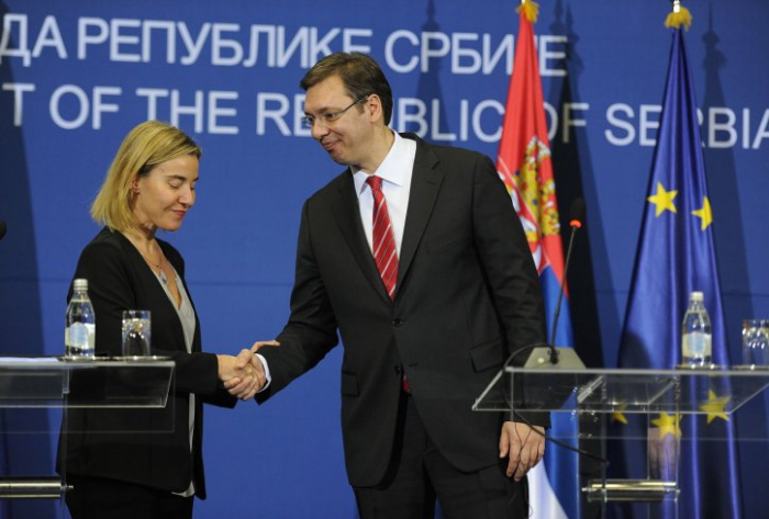 Итна средба во Давос на Вучиќ и Могерини