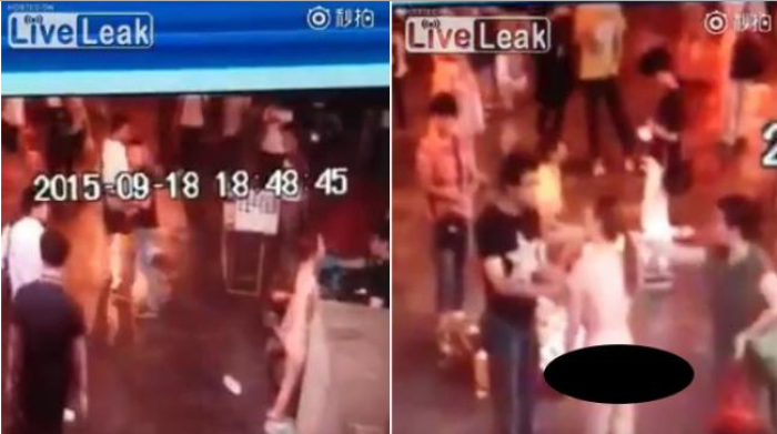 Снимката е направена во Кина, а единствено што се знае за ова несекојдневно соблекување на улица е дека девојка е лута и дека со овој гест нешто сакала да му покаже на дечкото со кого се расправа.