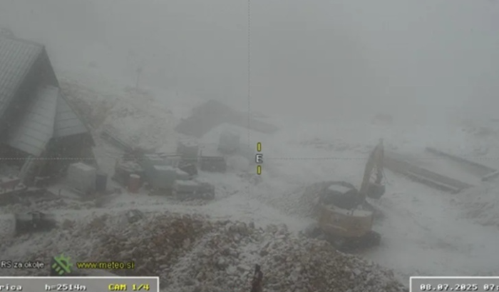 На снимките од метео-камерите на врвовите Кредарица и Канин јасно се гледа првиот јулски снег, а на највисоката метеоролошка станица на Кредарица во 10 часот биле измерени 0 степени Целзиусови.
