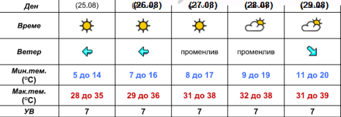 Максималната температура ќе биде во интервал од 24 до 32 степени. УВ=8