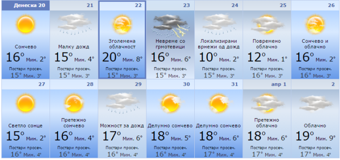 До крајот на месецот во повеќето денови ќе преовладува сончево време.