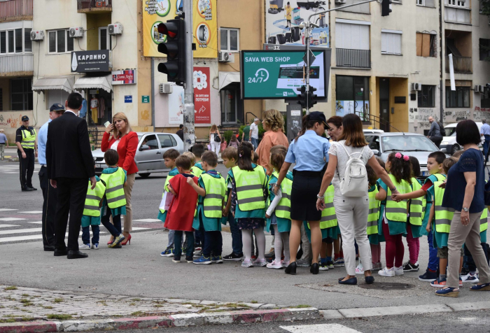 -Да ги потсетиме возачите на моторни возила и другите учесници во сообраќајот да бидат особено внимателни во близина на воспитно-образовните установи. На децата кои возат велосипед или тротинет им се препорачува да носат заштитен шлем – кацига. Децата кои пешачат да ја поминуваат улицата само на обележан пешачки премин, да не претрчуваат преку улица, да преминуваат улица само кога свети зеленото светло на пешачкиот семафор,да не користат мобилен телефон или слушалки при преминување на улица и слично, рече Кожуваровска.