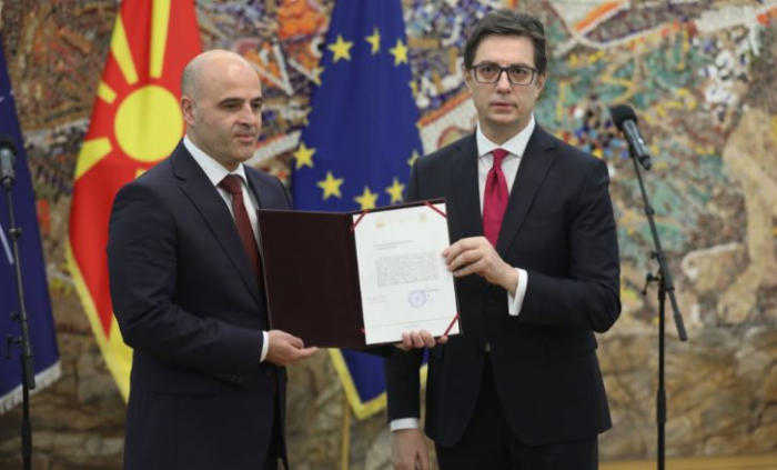 Претседателот Стево Пендаровски вчера врз основа на членот 84, став 1, алинеја прва од Уставот, му го врачи мандатот за состав на нова влада на лидерот на СДСМ, Димитар Ковачевски, откако од СДСМ добил известување за предлог за мандатар, поддржано од политичките партии кои заедно имаат мнозинството во Собранието.