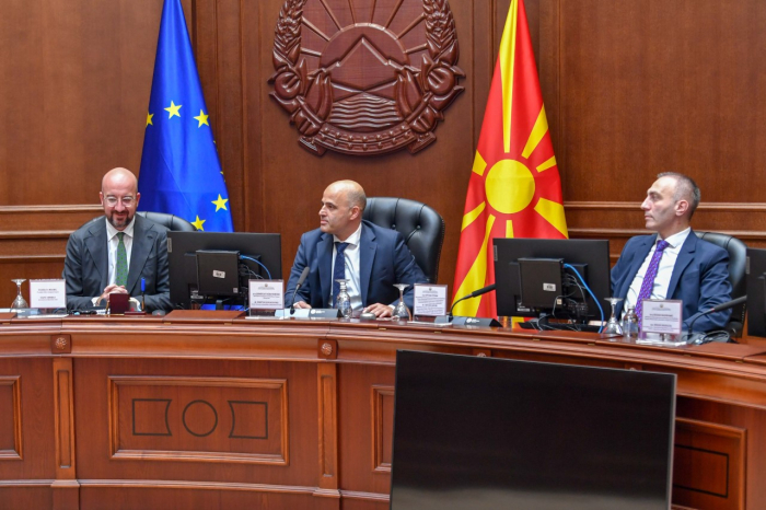 -Премиерот Ковачевски, уште еднаш пред присутните членови на Владата и делегацијата на Европскиот совет, предводена од Шарл Мишел ја истакна нашата стратешка определба како земја, која уште од основањето е за полноправното членство во Европската Унија. Премиерот Ковачевски подвлече дека нашиот пат и избор е демократија, слобода, мир, негување добрососедски односи и економски развој на земјата, се додава во соопштението.