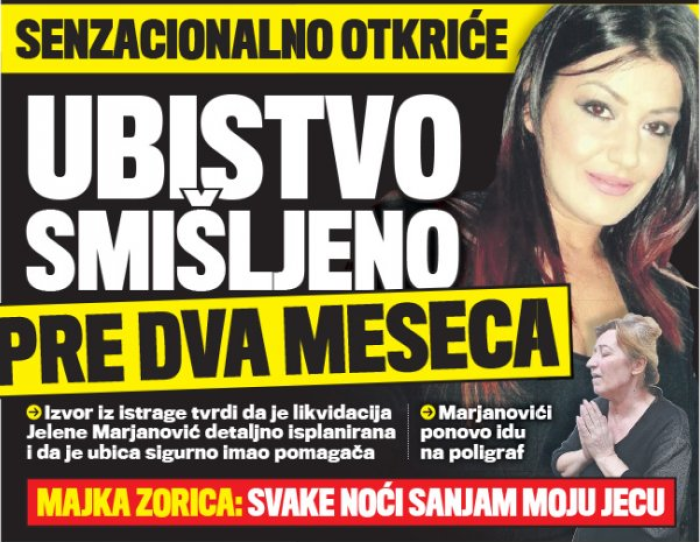Според сознанијата на весникот, убитвото на Јелена Крсмановиќ Марјановиќ (33) од Борча внимателно е планирано нјмалку 2 месеци. Исто така целото семејство Марјановиќ оваа недела повторно ќе биде однесено на испрашување во полиција како и на полиграф.