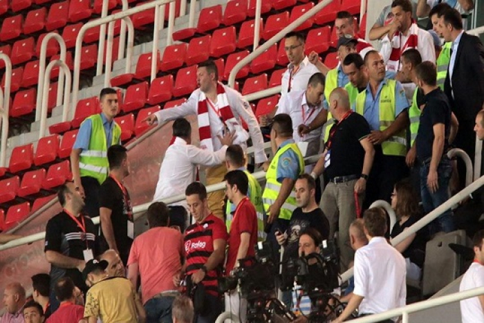 Провокативното и националистичко скандирање на полските навивачи и тоа упатено кон навивачите на Шкендија на српски јазик, ги исповоцира тетовските навивачи кои беа сместени во близина на ложа, па се обидоа да се пресметаат со раководството на полскиот тим, по што полицијата и обезбедувањето мораа да реагираат и да ги отстранат гостите.