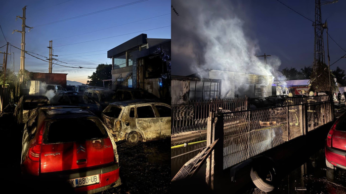 Ноќеска голем пожар подметнат во сервис за возила пред Пинтија