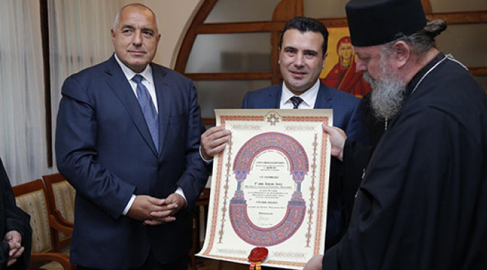 Митрополитот Струмички Наум денеска во манастирот Водоча им врачи ордени на македонскиот и на бугарскиот премиер Зоран Заев и Борко Борисов.