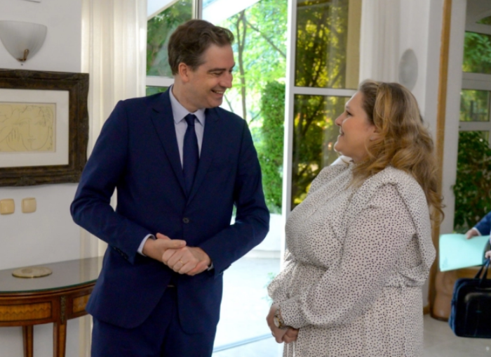 Министерката за одбрана Славјанка Петровска денеска оствари средба со министерот за надворешна трговија, атрактивност и француска дијаспора при Министерството за Европа и за надворешни работи на Француската Република, Оливие Бешт, кој деновиве е во посета на регионот.