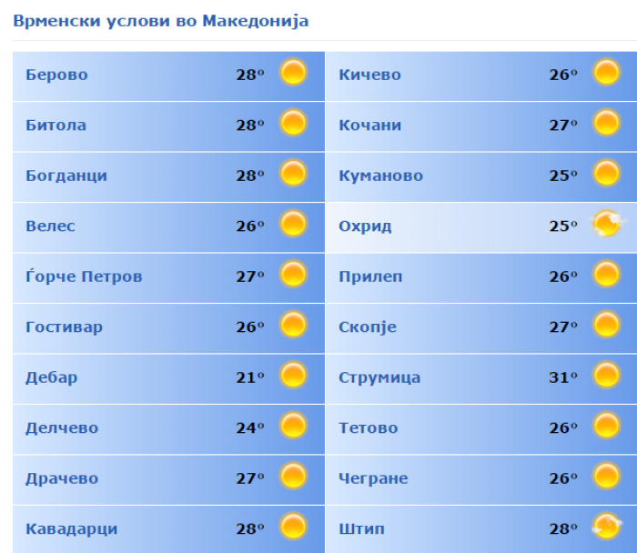 Ова се моменталните температури во Македонија: