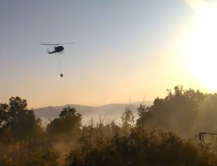 Командирот на ТППЕ-Берово, Сашко Руменковски за МИА вели дека уште рано наутро почнале хеликоптерите да исфрлаат вода од воздух, со што е спречено да се шири огнот кон боровата шума.