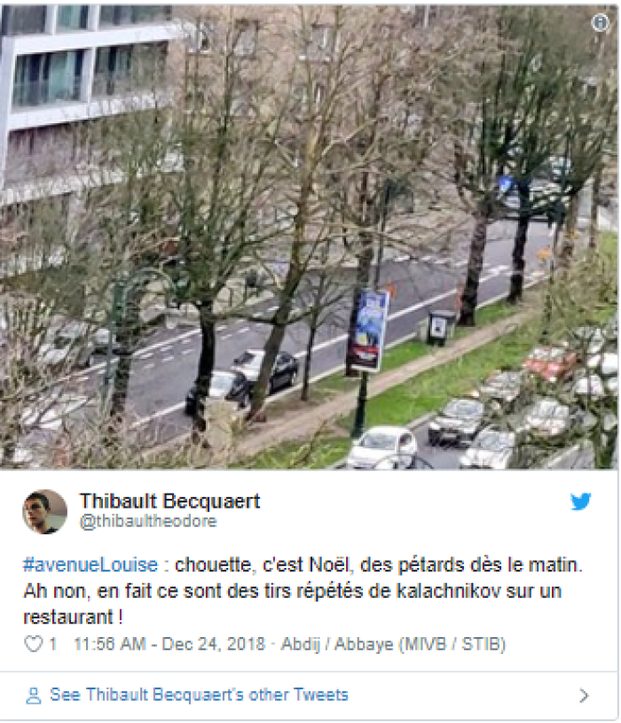 „Сведок видел маж како пука од оружје налик на „калашников“ во правец на прозорецот од ресторан во авенијата Луиз“, рече таа.