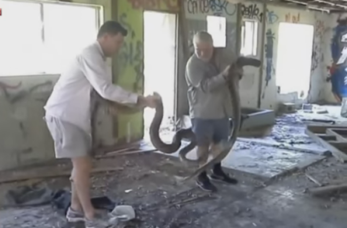 Два питони, со должина од околу пет метри, се криеле во една напуштена зграда во Австралија. Овие смртоносни влекачи ги откриле работници кои влегле во зградата бидејќи добиле наредба за нејзино уривање.