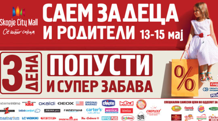 Посетителите, освен огромната забава, наградните игри и изненадувањата, ќе имаат можност да ги искористат големите попусти за време на 7. Саем за деца и родители во продавниците за детска облека, производи и играчки.