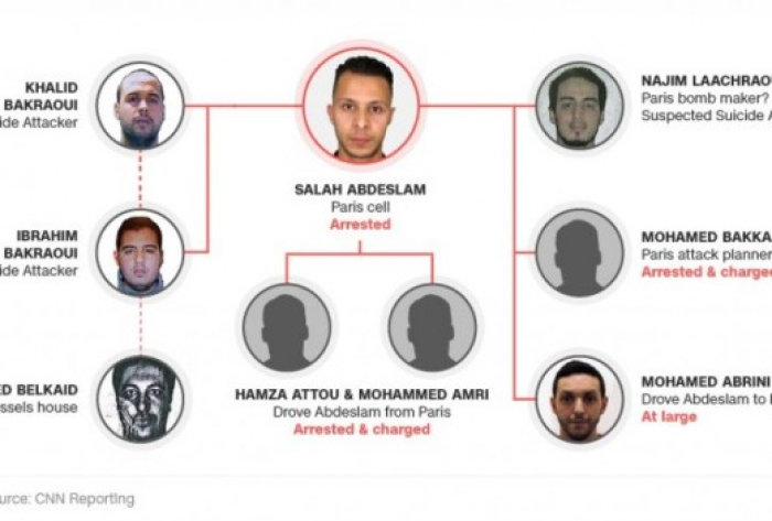 Централната личност на ќелијата која ги нападнала Париз и Брисел е Салах Абдеслам, главниот организатор на терористичките напади во Париз, уапсен во Брисел. Со него се поврзани и Наџим Лахрауи, за кој се знае дека учествувал во бомбашките напади во Париз и дека се разнел во самоубиствен напад на бриселскиот аеродром, како и браќата Ел Бакрауи, кои ги извеле нападите на аеродромот во Брисел (Ибрахим) и во метро (Калид).