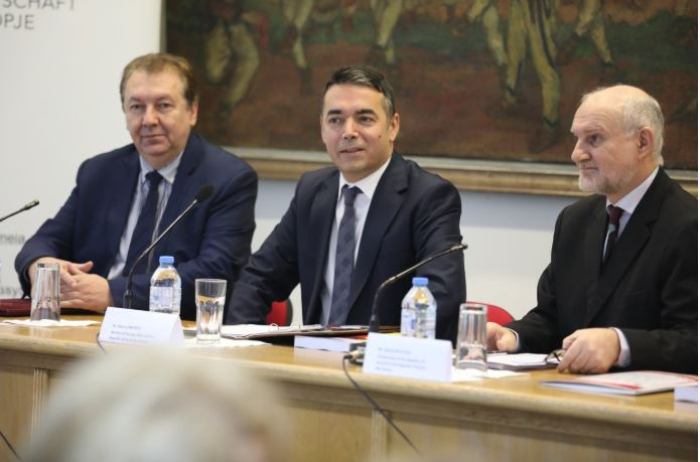 На промоцијата на книгата се обратија министерот за надворешни работи Никола Димитров, австрискиот амбасадор во земјава Георг Вуцас и ректорот на Универзитетот „Св. Кирил и Методиј“ – Скопје Никола Јанкуловки.