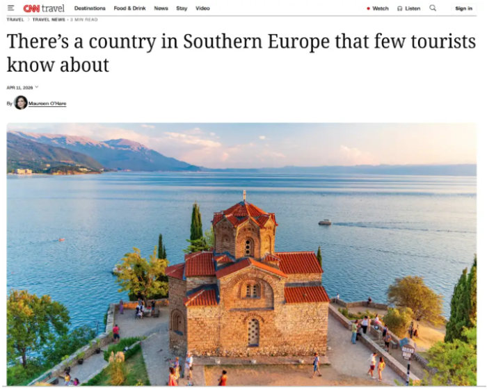 Американскиот медиум „Си-ен-ен“ пишува за Северна Македонија, како европска туристичка дестинација, што, според медиумот, е една од оние кои неправедно остануваат во сенка на најпопуларните туристички центри. Во најновото издание на туристичкиот билтен на „Си-ен-ен Травел“, Македонија е опишана како „драматично планинска дестинација“, со природни пејзажи што комбинираат зелени долини и врвови покриени со снег, со сончева клима и разновидна гастрономија, локално специфична и многу поврзана со традицијата.