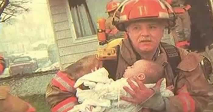 Во овој случај, тоа е пензионираниот пожарникар Мајк. Далечната 1998 година спасил мало бебе од запалена куќа. Само секунди одлучувале за живот или смрт.