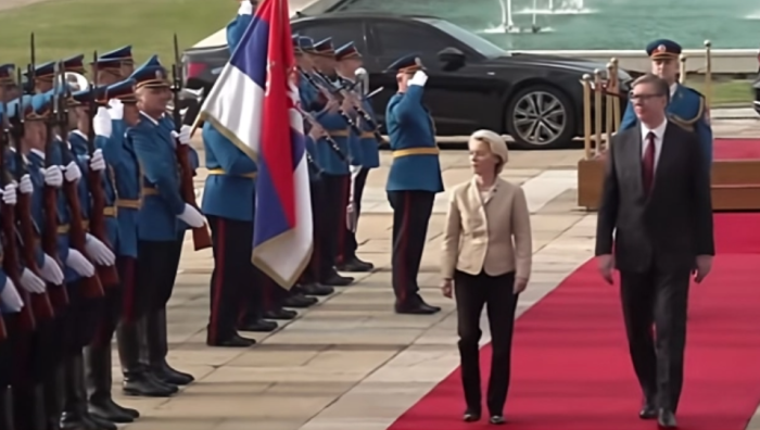 За фон дер Лајен беше одржан свечен пречек. Како што најави Претседателството, по приемот ќе следи тет-а-тет средба меѓу Вучиќ и фон дер Лајен по што претпладнево ќе следуваат изјави за медиумите.