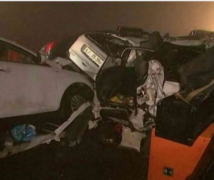 На фотографиите што се објавија на социјалните мрежи може да се видат десетици смачкани автомобили, од кои неколку завршиле под камион.