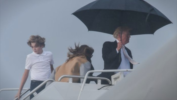 Претседателот на САД Доналд Трамп ги остави својата сопруга Меланија Трамп и синот Барон да накиснат за време на невремето на меѓународниот аеродром Палм Бич во Флорида.