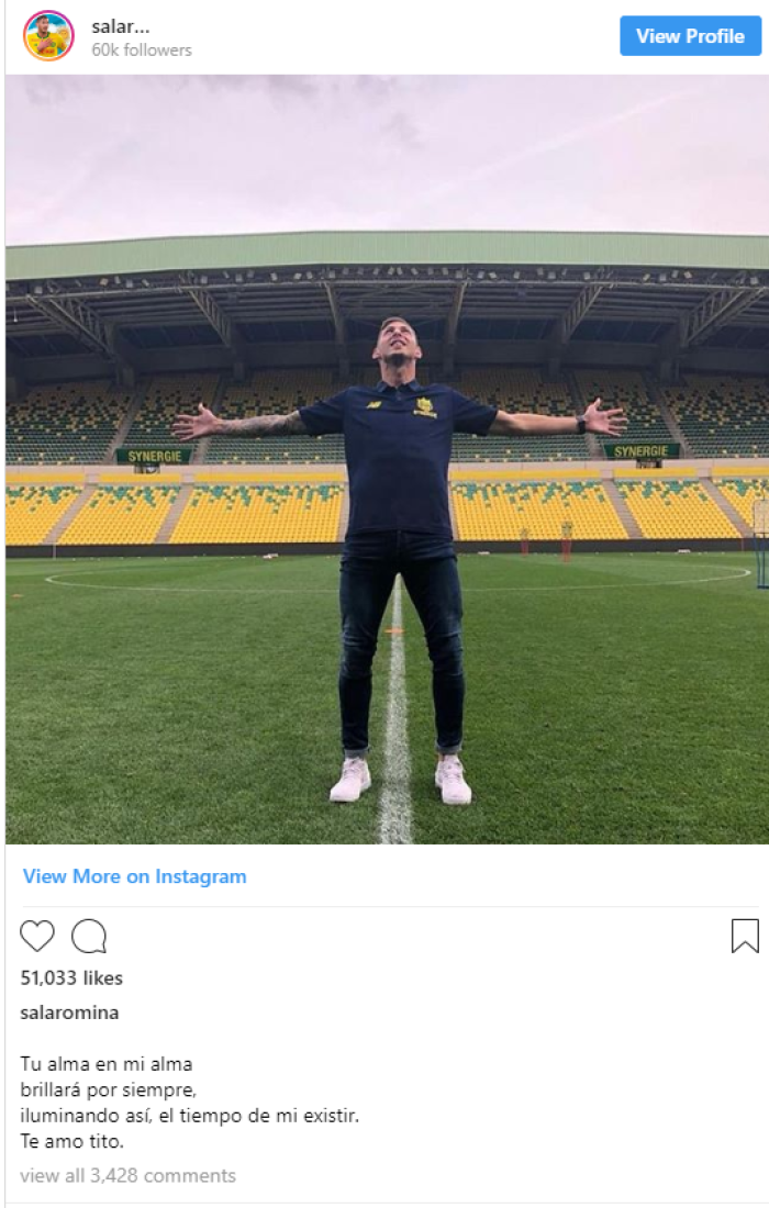 Сестрата на фудбалерот Ромина Сала на својот Инстаграм профил сподели фотографија од својот брат со кого се опрости со тешки зборови.