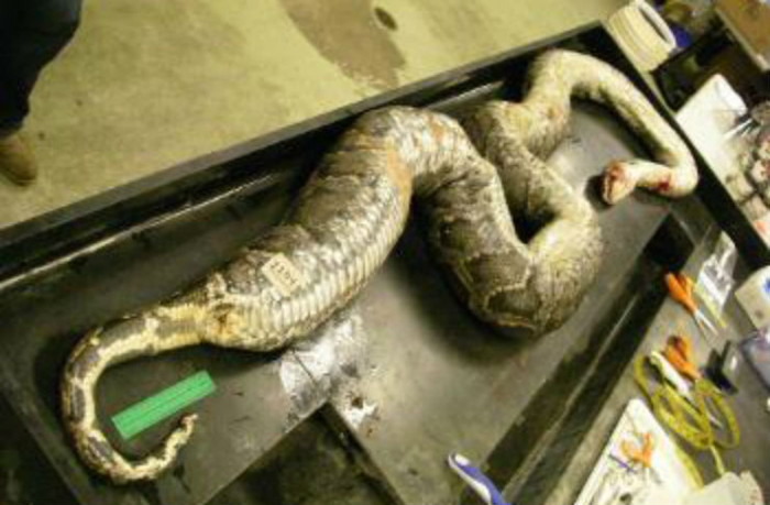 Иако е познато дека бурмански питон од таа големина може да проголта елен, никогаш до сега на тоа подрачје не е пронајдена змија која во себе имала дури три од нив.