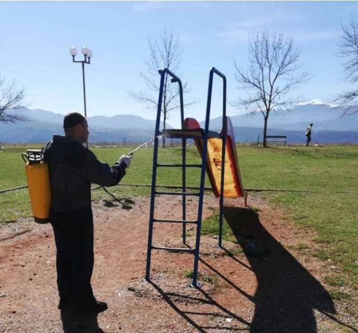 Во Дебар дезинфекција на јавни површини, канти за отпад и спортски терени