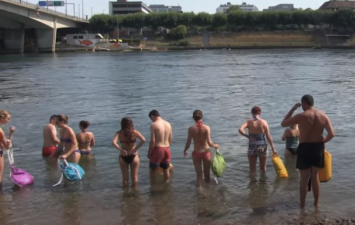 Оваа европска река во текот на летните месеци е извор на забава за многу граѓани на овој швајцарски град што се наоѓа на границата помеѓу Германија и Франција.