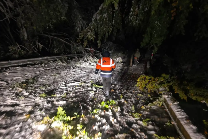 Во Маврово над 30 сантиметри снег, вработени во НП Маврово ги чистат паднатите дрвја | ФОТО