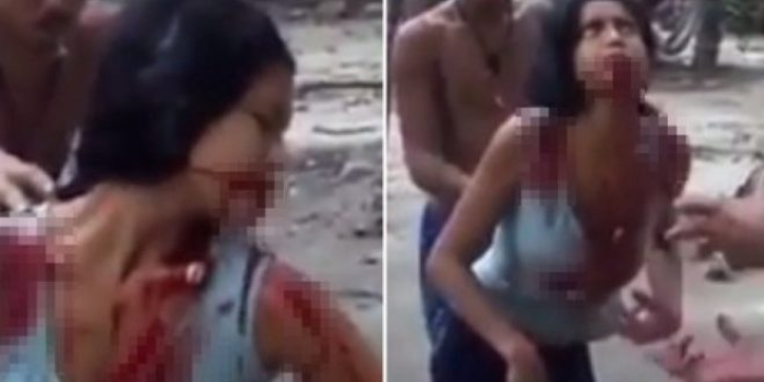 Оваа жена луѓето ја држат за раце, додека таа цело време се обидува да ја поврати контролата на своето тело и плука крв.