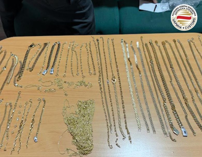 Над еден килограм златен накит во вредност од 4 милиони денари е запленет од страна на царинските службеници при влез на граничен премин Богородица, со што воедно е спречен обид за избегнување плаќање увозни давачки во висина од еден милион денари.