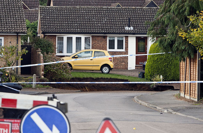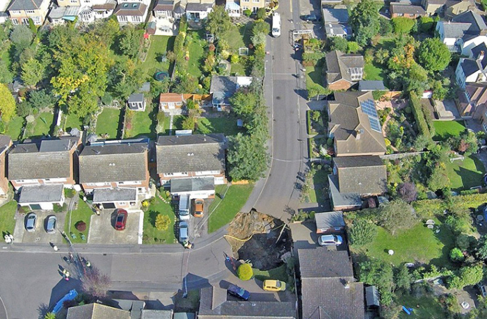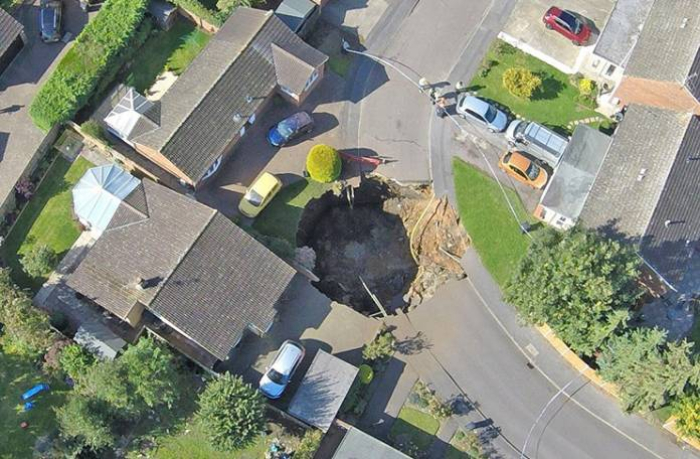 20 метри широка дупка се отворила во градот Свети Албанс во Велика Британија рано изутрина, принудувајќи шест семејства да ги напуштат своите домови. Кратерот, кој е длабок околу 10 метри.