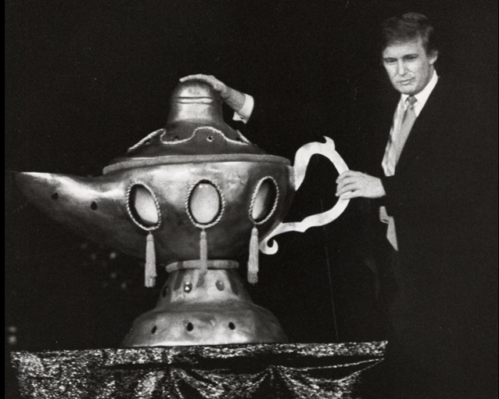 Доналд Трамп за време на отварањето на неговото Таџ Махал казино, 5 април 1990 година