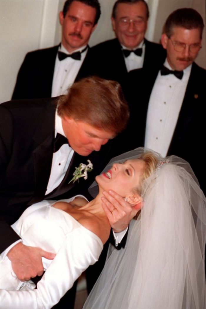 Доналд Трамп и неговата невеста Марла, за време на нивната свадба на 20 декември, 1992 година